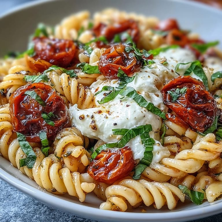 Save to Pinterest The first time ripe tomatoes and creamy burrata collided in my kitchen, it was a humid July afternoon with sunlight streaming across the countertop. I remember standing at the stove, the basil leaves freshly picked from the small pot near my window, their aroma drifting through the air and mixing with garlic in the pan. Pasta was bubbling away and my playlist was humming softly in the background, somehow matching the mood of the day. It seemed almost too simple—just a touch of olive oil, good cheese, and the freshest produce you can find. But from that moment, Caprese Pasta with Burrata became my go-to whenever summer called for something undeniably delicious yet unfussy.