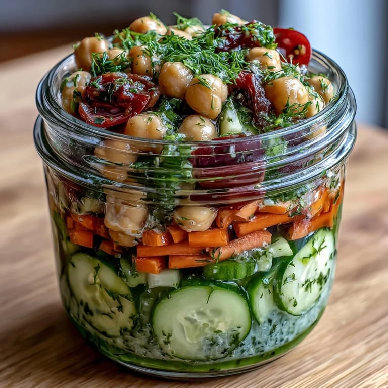 Save to Pinterest My coworker Sarah kept showing up to meetings with these gorgeous layered jars, and I finally asked what she was eating instead of her usual sad desk lunch. She handed me one to try, and honestly, the moment that citrus-herb dressing hit the chickpeas, I understood why she'd stopped complaining about meal prep. Now I make four of these every Sunday, and somehow the flavors actually get better by Wednesday.