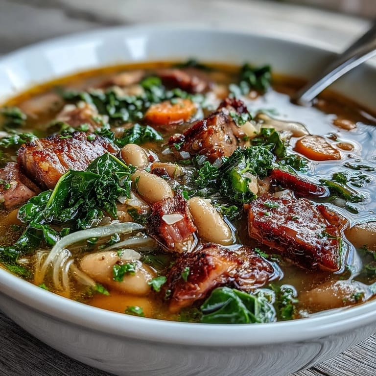 Save to Pinterest There's something about a pot of white bean soup that makes a kitchen feel instantly warmer, even on the coldest afternoons. My neighbor stopped by one January evening when I had this simmering, and the smell alone kept her lingering for twenty minutes before she finally asked for the recipe. It's one of those soups that tastes like it took hours but honestly comes together in under an hour, with ham adding a subtle smokiness and kale bringing that peppery green note that makes everything feel a little more intentional than ordinary comfort food.