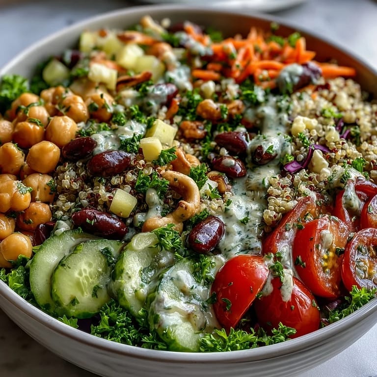 Save to Pinterest My coworker brought this rainbow salad to a potluck on a grey Tuesday, and honestly, I was skeptical until I took one bite. The colors were almost too perfect, like someone had arranged them just to make me eat my vegetables, but then the flavors hit differently—bright lemon, creamy nuts, the earthiness of beans all dancing together. That afternoon changed how I think about salads entirely. Now I make versions of it constantly, tweaking the vegetables based on what looks good at the market, and every time someone asks what makes it so craveable, I realize it's the contrast between textures and that perfectly balanced dressing.