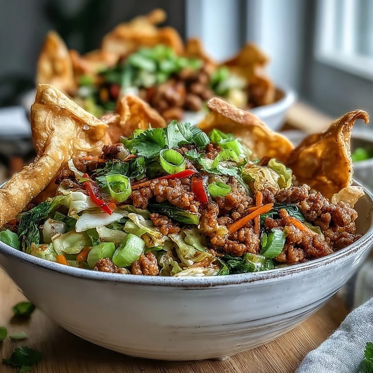 Save to Pinterest My kitchen got wonderfully chaotic one weeknight when my teenager complained about the usual chicken-and-rice rotation and my partner mentioned craving takeout egg rolls. Instead of calling for delivery, I raided the fridge and realized I could transform that crispy, cabbage-forward craving into something faster and way more fun—ground turkey, ranch seasoning, and wonton strips became the answer. What started as a lazy improvisation turned into something we now make constantly, and honestly, it tastes better than most restaurant versions.