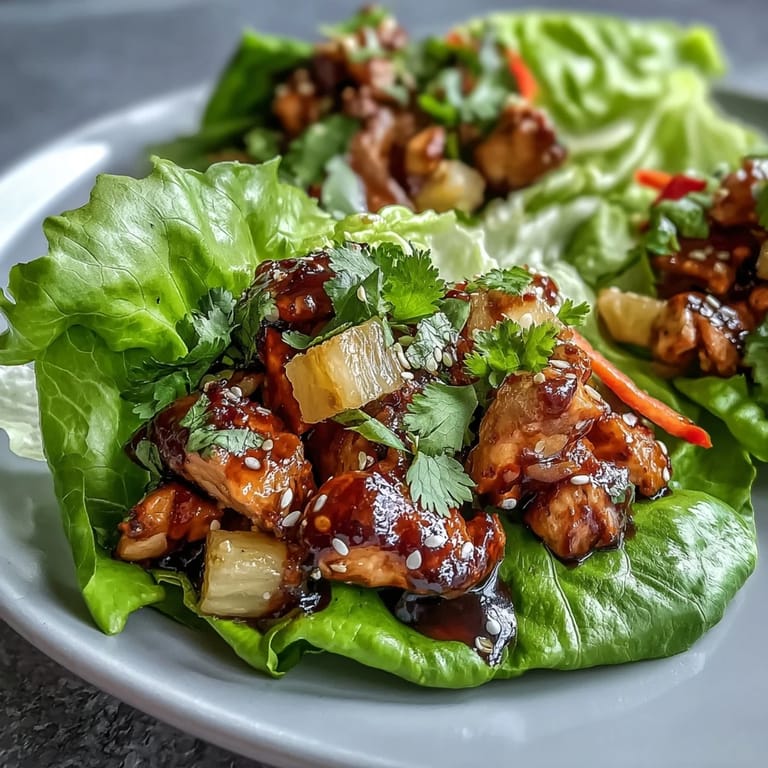 Save to Pinterest These Teriyaki Chicken Pineapple Lettuce Wraps prove that healthy eating doesn't have to be boring or complicated. With their perfect balance of sweet, savory, and fresh flavors, wrapped in crisp lettuce leaves that provide satisfying crunch without the heaviness of bread or tortillas, they're a meal that feels indulgent while being genuinely nutritious. Whether you're looking for a quick weeknight dinner, a crowd-pleasing party appetizer, or simply a delicious way to enjoy more vegetables, these wraps deliver on every level. Gather your ingredients, fire up the skillet, and get ready to enjoy a restaurant-quality Asian fusion dish right in your own kitchen.