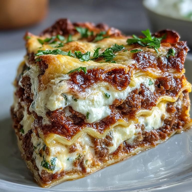 Save to Pinterest My neighbor knocked on the door one Sunday holding an empty casserole dish and asked if I had a lasagna recipe that actually worked. Her last attempt had turned into a watery mess, noodles crunchy on the edges and soupy in the middle. I invited her in, pulled out my baking dish, and we spent the afternoon layering meat, cheese, and noodles while her kids played in the yard. That lasagna came out perfect, golden and bubbling, and she's made it every month since.